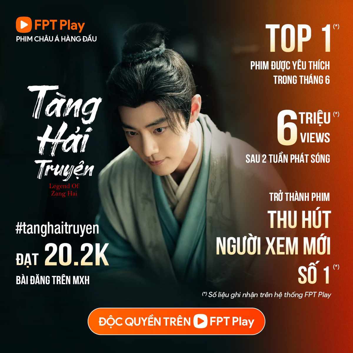 Bộ phim Tàng Hải Truyện đang trở thành “tâm điểm” tháng 6 với loạt thành tích siêu ấn tượng trên FPT Play: 🔥 Top 1 phim được yêu thích nhất tháng 6 📈 6 triệu lượt xem chỉ sau 2 tuần phát sóng 🚀 Phim có lượng người xem mới cao nhất 📲 Hashtag #tanghaitruyen cán mốc 20,2K bài đăng trên mạng xã hội. Cộng đồng mạng bàn luận không ngừng về tình tiết, diễn xuất và visual "đỉnh chóp".